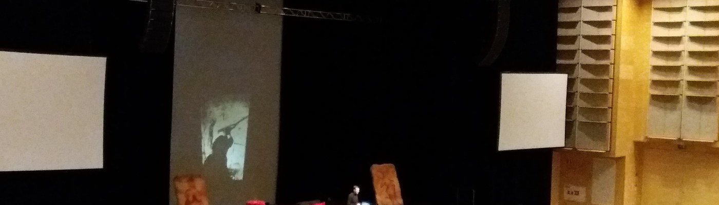 Tähän esitykseen lähteminen tapahtui todellakin hetken mielijohteesta, koska en ollut ennen esityspäivää tietoinen, että Martti Suosalon Luolamies -mogologiesitys oli Jyväskylään tulossa. Niinpä sainkin huippupaikan tosi kaukaa lavasta. Martti Suosalo näyttelee kuitenkin niin suurella intensiteetillä ja fokuksella, että ilmaisun voima säilyy takariville saakka. Ei ole mitään ongelmaa tajuta missä mennään ja mitä tapahtuu, vaikka kasvojen ilmeitä ei täysin piippuhyllyltä erotakaan. Se on äärettömän hieno taito näyttelijälle, että vaikka tekee pientä ja tarkkaa ilmaisua, niin se välittyy koko katsomoon, ei vain eturiveihin. Pidän todella paljon esityksen rennon letkeästä aloituksesta, missä esiintyjä tulee lavalle siinä vaiheessa, kun yleisö vielä hiljalleen saapuu saliin. Sellaista rentoa jutustelua ja yleisöstä vaikutteita ottavaa puhetta on tosi kiva seurata.