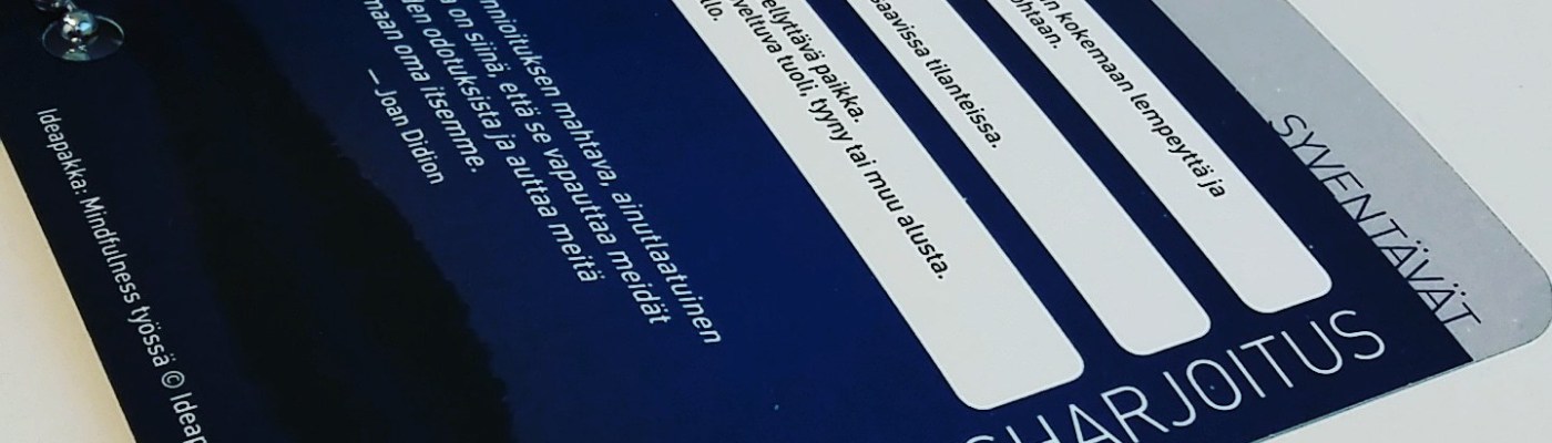 Ideapakan version tarkemman ohjeistuksen voi tsekata Mindfulness työssä -pakasta, en sitä tähän toki julkisesti postannut. Oma fiilis on se, että siellä esitelty mantra ”Toivon onnellisuutta. Toivon turvaa. Toivon rauhaa.” oli omalle ajattelulle helpommin lähestyttävä, kuin tämä minkä yllä esittelin. Kuitenkin koska haluan haastaa ajatteluani, niin aion nyt sitten opetella myös tuon omalle mielelle haastavamman version.