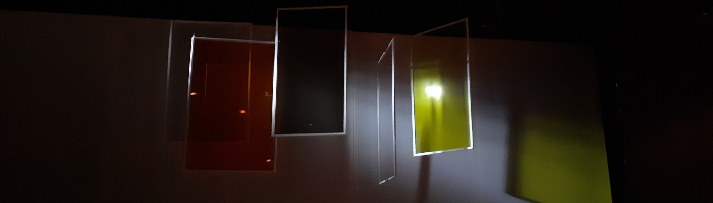 Hyvin yksinkertaisen lavastuksen ainoa pysyvä valopilkku ovat värilliset ikkunaruudut, joiden läpi maailma näyttää hyvin erilaiselta. Mielikuvituksellisilla ja futuristishenkisillä projisoinneilla syntyy hyvin omaleimaisia mielenmaisemia tilaan. Pisteet yhdistyvät, mutta missä ja miten? Yhtenevällä puvustuksella myös vahvistetaan kuvaa maailmasta, jossa yhdenmukaisuus ja ryhmään kuuluminen on tärkeää, mutta pieniä yksilöllisiä eroja näkyy myös pinnalla. Tässä dystooppisessa ja melko kliinisen kylmässä maailmassa ihmisiltä jää paljon huomaamatta. Paahdetaan eteenpäin ja puhutaan Kaarinasta, kun pitäisi pysähtyä huomaamaan ne ihmiset, jotka tällä hetkellä ovat lähellä ja myös omat tunteensa. Huomaammeko kenen kanssa olemme vai odotammeko koko ajan jotain muuta saapuvaksi tai tapahtuvaksi? Suoritammeko omaa rutiiniamme ja puhumme jostain ulkopuolisesta, kuulematta omaa tai kenenkään muun ääntä? Onko mentävää yksin metsään kuullakseen ajatuksensa ja tarpeensa?