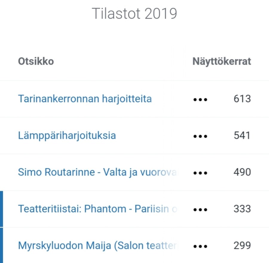 Vuosina 2016-2019 luetettiin (tai ainakin klikattiin auki) useimmin seuraavia tekstejä: