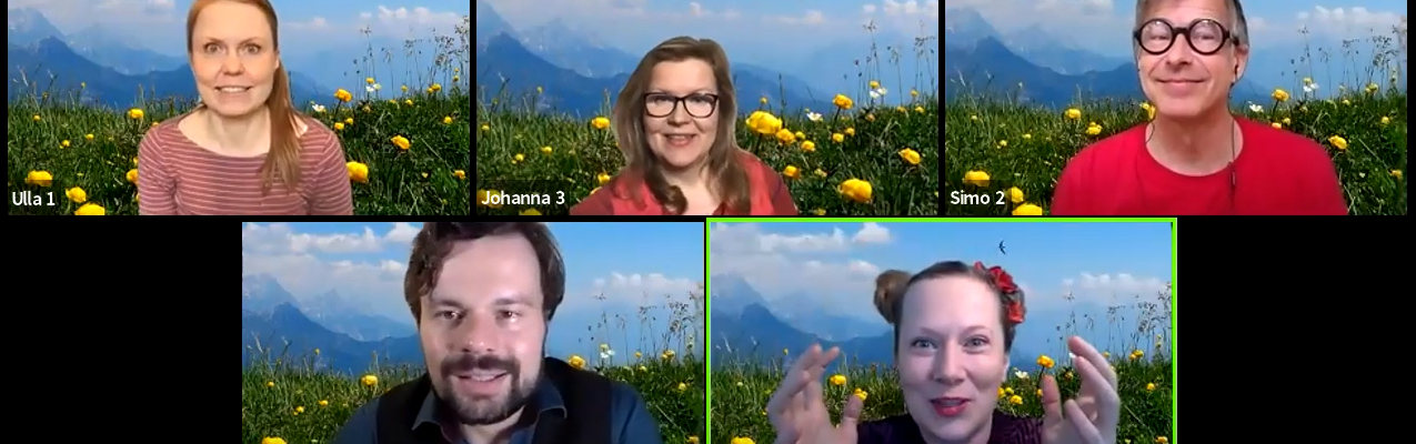 Moiccu, sanon näin, koska nyt hypätään tuntemattommille vesille ja vilkaistaan koko perheelle suunnattua improa. Uunituore etäimpropoppoo Impropalloilua esitti vappuna koko perheen improvisaatioteatteriesityksen, jossa viisi kokenutta improvisoijaa leikki tuttuja impropelejä Zoomin kautta yhdessä. Tämä improvisoitu leikkihetki striimattiin Vappuna livenä Youtubessa ja se on siellä edelleen katsottavissa. Tämä onkin näin improintoilijan kannalta ollut näissä poikkeusajoissa mainio piirre, että hetkeksi tai pysyvästi netistä löytyvien suomenkielisten improvisoitujen esitysten kirjo on laajentunut huomattavasti. Se on sinänsä aika terve kehityssuunta, koska improvisaatio on lajina vähän semmonen, että se saattaa jäädä pienenpienen piirin ja yleisön jutuksi. Sanoisin, että nyt on kulta-aika, jos haluaa helposti laajentaa näkemystään siitä, mitä kaikkea improvisaatio voi olla. Ei tartte mennä mihinkään kotoaan etsimään oman kaupungin improesityksiä, vaan esitykset ympäri Suomen tulevat kotiinkuljetettuna bittivirtoja pitkin.