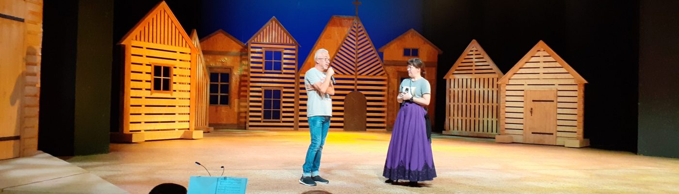 Kaikki ihanat yksityiskohdat, ihmiset, tanssi ja musiikki sekä pehmeän valoisa näyttämökuva puulavasteineen, veivät mukanaan. Ensimmäisen kohtauksen alku riitti jo kertomaan, että todellakin haluan nähdä tämän. Haluan itkeä, nauraa ja tanssia sekä laulaa sisäisesti hengittäessäni lavatapahtumien mukana. Jo tässä pienessä katkelmassa paloi sellainen riemuisa olemisen liekki, että ilmasta tuli heti keveämpää hengittää. Samalla tavoin työryhmän ja etenkin ohjaajan toiminnasta huokui sellainen ihana rauha ja positiivinen tekemisen meininki, että katsomossa oli helppo haltioitua näkemästään ja kuulemastaan.