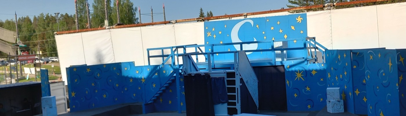 Ensimmäisenä saapuessa huomion kiinnittää sinisävyinen lavastus, jonka tähtikuviot vievät ajatukset iltasatujen maailmaan. Lavastuksessa on maalattu isolla pensselillä ja luovuutta käyttäen. Veden aallot luodaan työryhmän toimesta ja sänkynä toimii lavasteisiin sointuvan värinen puulaatikko. Liikkuva iso lavaste-elementti tarjoaa näkymän sekä Kultasten perheen kotiin että toimii merirosvojen laivana.