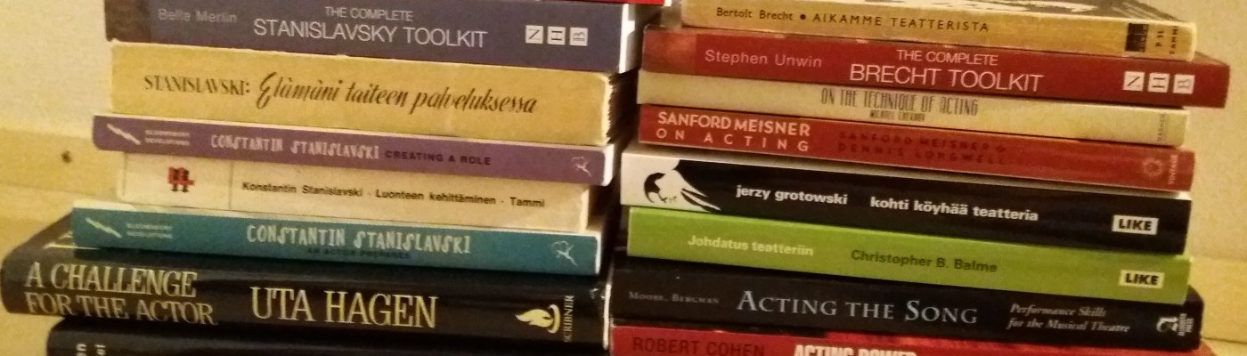 Koska luen aika paljon erilaista teatteriin, draamaan ja improvisaatioon liittyvää kirjallisuutta, niin ihan jo oman muistin täydellisen riittämättömän kapasiteetin vuoksi on syytä kirjoittaa ajatuksia myös johonkin talteen. Tälle sivulle koostan tietoa siitä, mitä kaikkea sitä onkaan tullut luettua ja mitä luetusta on tarttunut mukaan. Mikäli laiskuus ja unohdus ehtii iskeä, niin mikäänhän ei estä lukemasta eri aihealueisiin liittyviä teoksia ihan itse.