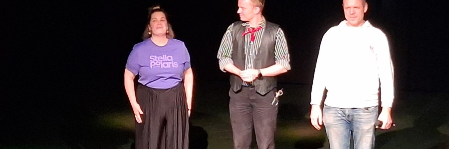 Stella Polariksen kahden näyttelijän ja yhden muusikon ryhmä toi Jyväskylään, Ässiä hatusta -improryhmän järjestämälle, Impromaratoonille esityksensä, joka kevyesti mukailee Stellan omaa Vapaa pudotus -esitysformaattia. Se, miten vapaasti nyt mukailtiin, on arvoitus, koska en ole tähän kyseiseen formaattiin aiemmin tutustunut. Pitkän improvisoidun näytelmän formaatti kuitenkin siis kyseessä. Siitä nähtiin nyt sitten vielä astetta vapaampi 45 minuutin… Lue lisää Impromaratooni 2025: Vapaa pudotus 1.11.2025 (Stella Polaris)